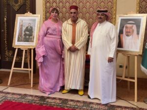 وتوالت فقرات الحفل، حيث قدّم ممثل الجالية المغربية كلمته، ثم جرى تسليم درع المنتخب المغربي، تلاه تقديم عرض فني لفرقة فلكلورية مغربية، إضافة إلى عرض راقٍ للأزياء التقليدية المغربية “القفطان المغربي”. كما استمتع الحضور بلوحة غنائية مؤثرة بعنوان “المسيرة الخضراء” أدّتها الفنانة غزل المغربي.