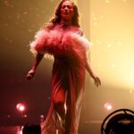 تنتمي هذه الإطلالة إلى ما يصفه المصمم العالمي بـ”الهوت كوتور الأدائي”، وهي مدرسة جمالية تمزج بين الحِرفية العالية للأزياء الراقية ومتطلبات الأداء الحي، حيث تتكامل الدراما البصرية مع الوظيفة، ويصبح الجسد مساحة فنية متحرّكة لا مجرد حامل للقطعة.