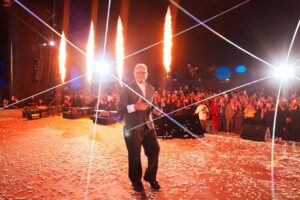 وقدم الهضبة خلال الحفل باقة من أشهر أغانيه التي تفاعل معها الحضور بالتصفيق والغناء، حيث افتتح السهرة بـ “يا أنا يا لا”، قبل أن يشعل الأجواء بأغانيه الحديثة والقديمة مثل “خطفوني”، “شايف قمر”، “قمرين”، “ليلي نهاري”، “العالم الله”، “نور العين.